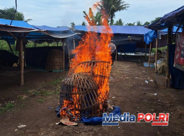 Sebagai langkah antisipasi dan bentuk peringatan, petugas kemudian melakukan pemusnahan terhadap fasilitas yang diduga digunakan untuk aktivitas judi sabung ayam, berupa kurungan ayam, terpal, dan karpet, dengan cara dibakar di lokasi.